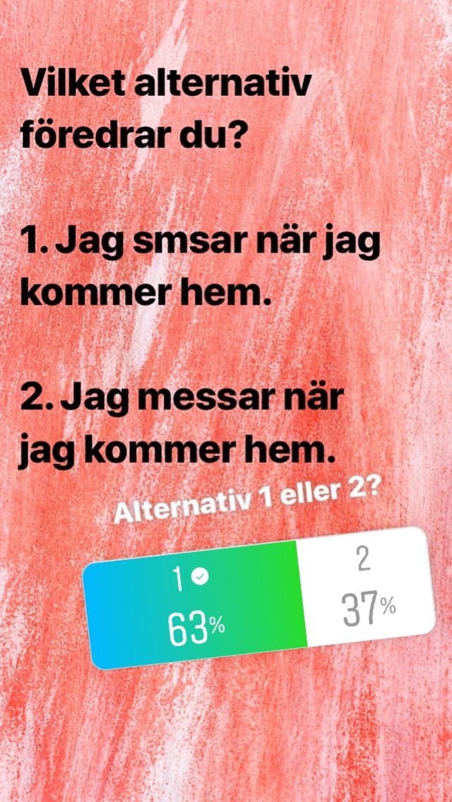 I går frågade jag mina följare på Instagram om de föredrar att smsa framför att messa. Så här blev resultatet: