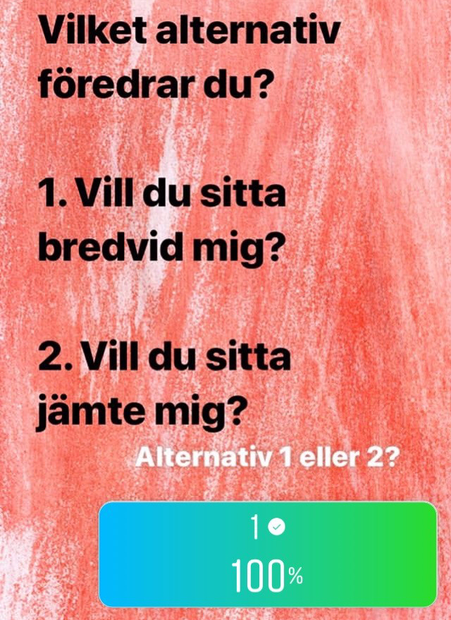 I går frågade jag mina följare på Instagram om de föredrog bredvid framför jämte. Så här blev resultatet: