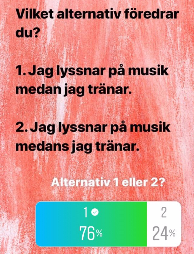 I går frågade jag mina följare på Instagram om de föredrog medan framför medans. Så här blev resultatet: