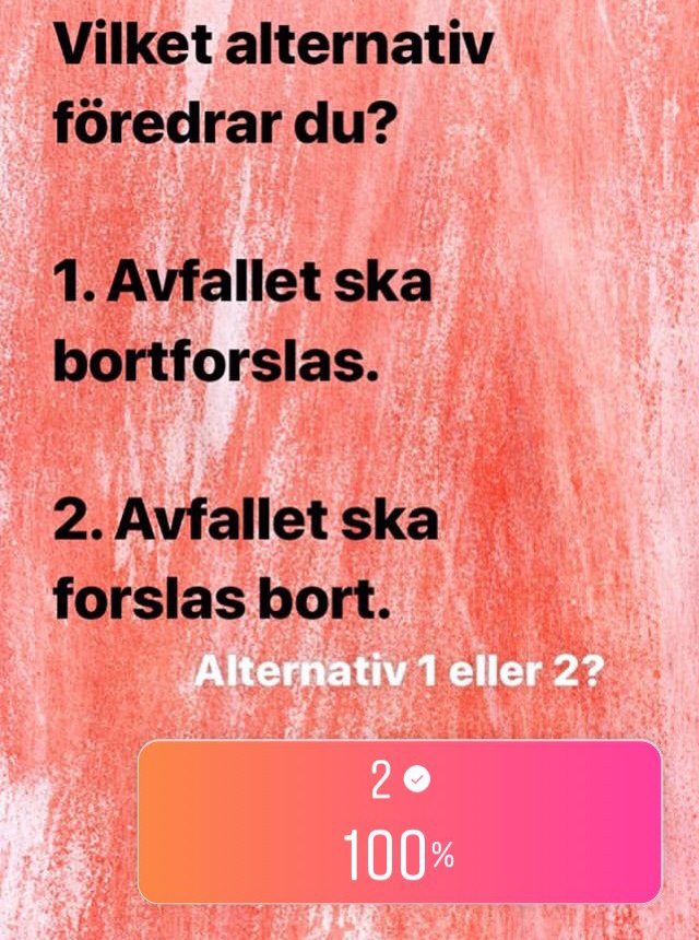 I går frågade jag mina följare på Instagram om de föredrog bortforslas framför forslas bort. Här är resultatet: