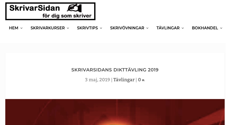 Temat för den här dikttävlingen är döden. Skriv en dikt eller prosadikt på max en A4-sida där du tolkar temat, och skicka in den senast 18 september 2019. Du tävlar om att få delta i diktantologin Revansch 2020, exemplar av antologin, och en prissumma på 500 kr. För mer information, följ den här länken: Skrivarsidans dikttävling 2019.