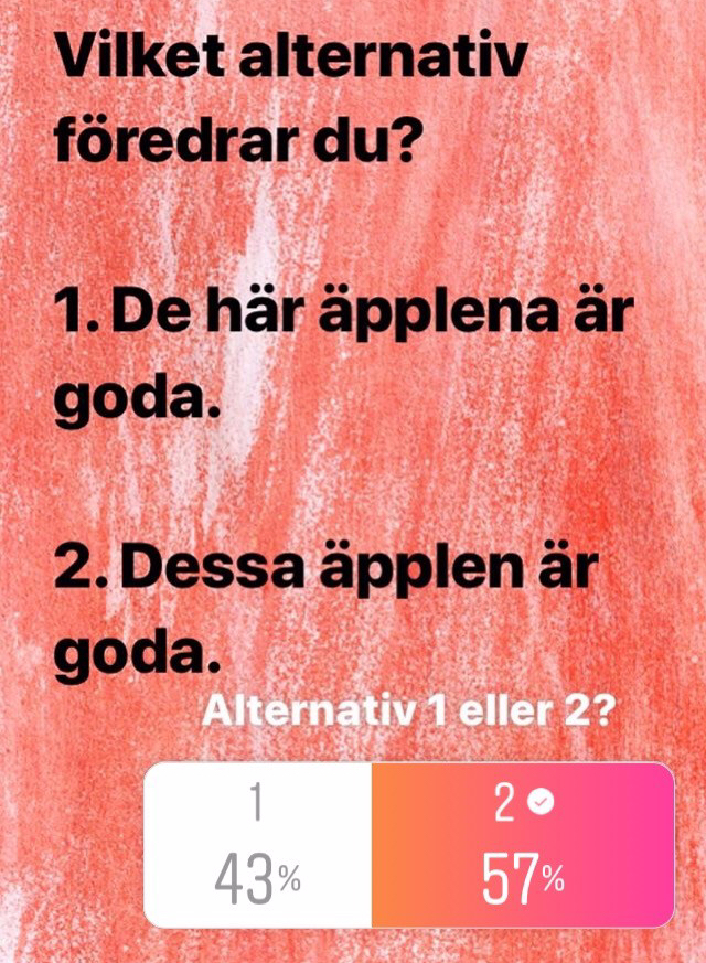 I går frågade jag mina följare på Instagram om de föredrar att skriva de här framför dessa. Så här blev resultatet: