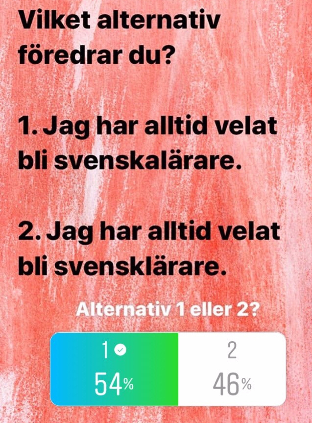 I går frågade jag mina följare på Instagram om de föredrar svenskalärare framför svensklärare. Så här blev resultatet: