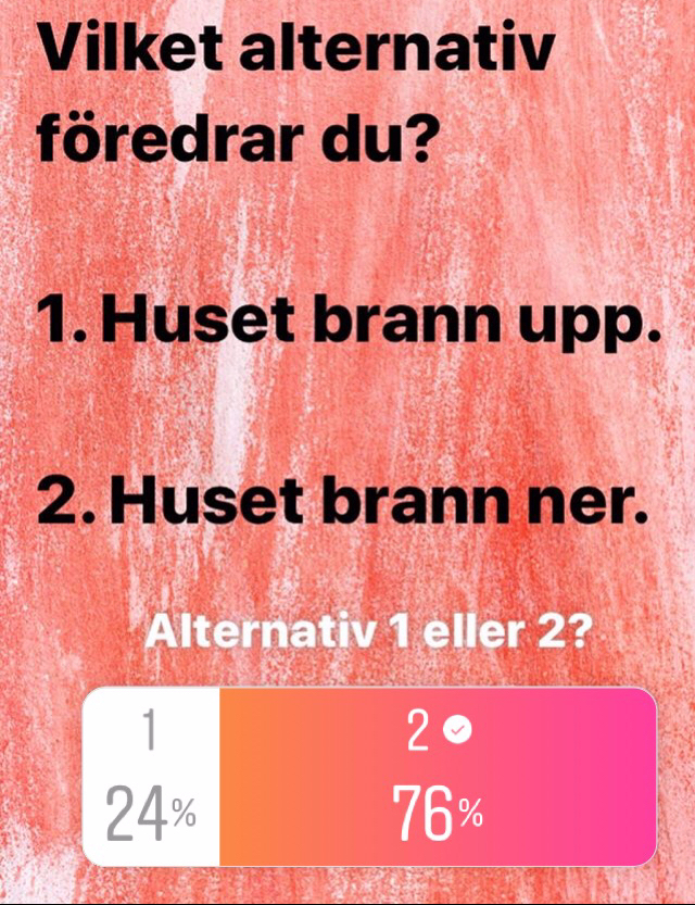 I går frågade jag mina följare på Instagram om de tycker att ett hus brinner upp eller ner. Så här blev resultatet: