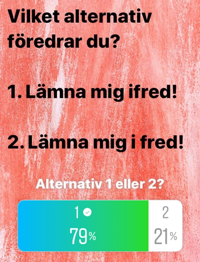 I går frågade jag mina följare på Instagram om de föredrar att skriva ifred framför i fred. Så här blev resultatet: