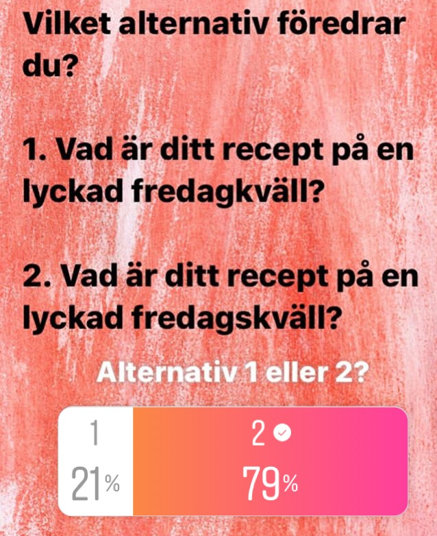 I går frågade jag mina följare på Instagram om de föredrar att skriva fredagkväll framför fredagskväll. Så här blev resultatet: