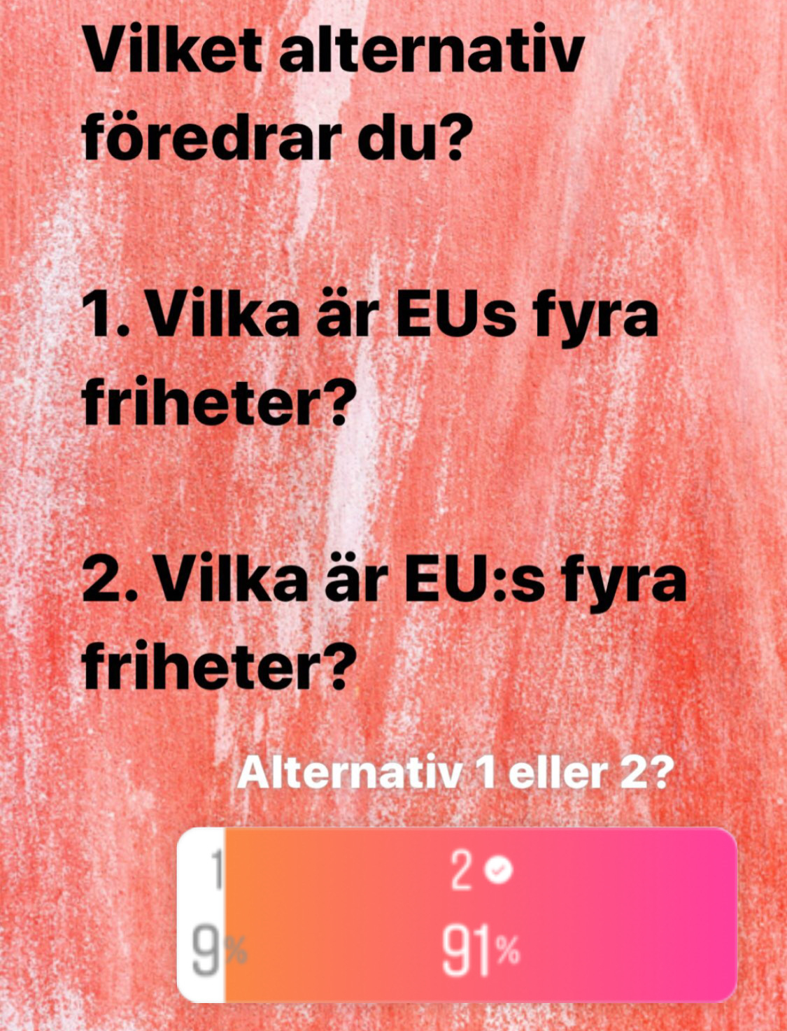 I går frågade jag mina följare på Instagram hur de föredrar att skriva genitivformen av EU: EUs eller EU:s. Så här blev resultatet: