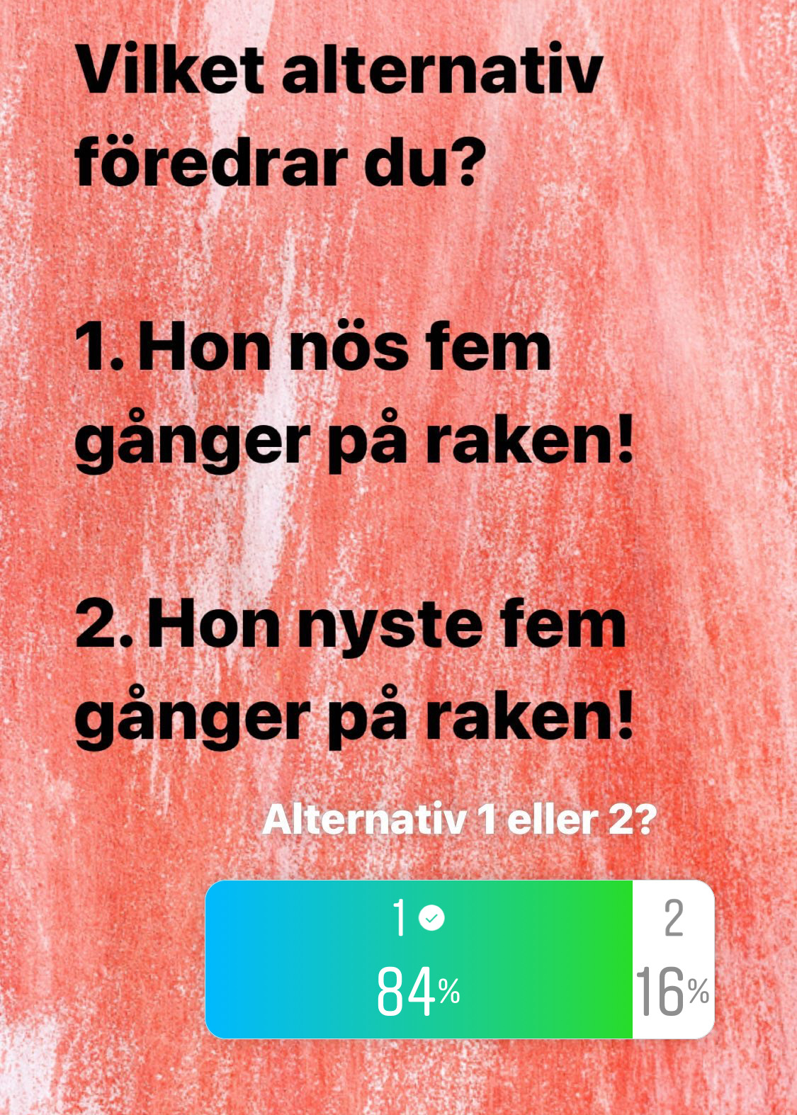 I går frågade jag mina följare på Instagram om de föredrar att säga nös framför nyste. Så här blev resultatet: