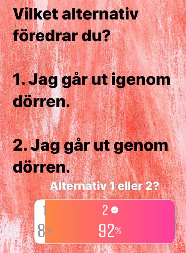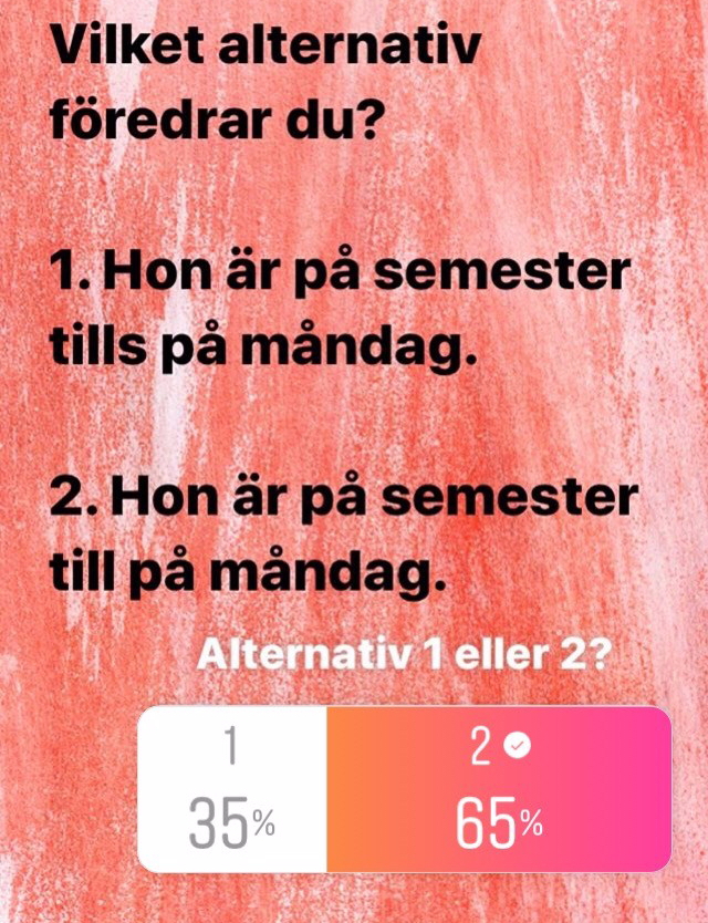 I går frågade jag mina följare på Instagram om de föredrar adjektivformen blåa framför blå. Så här blev resultatet: