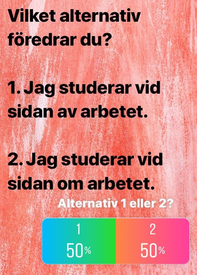 I går frågade jag mina följare på Instagram om de föredrar att skriva de här framför dessa. Så här blev resultatet: