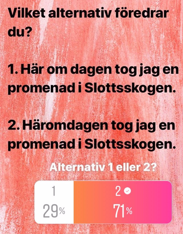 I går frågade jag mina följare på Instagram om de föredrar att skriva här om dagen framför häromdagen. Så här blev resultatet:
